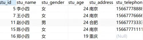 select * from tb_student where stu_age > 25 and stu_gender = '女';