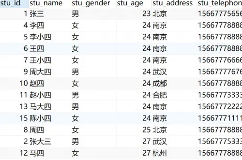 select * from tb_student where stu_address = '北京' or stu_address = '武汉';