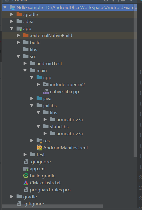 仔细观察可以发现,多了一个cpp包,而且还多了个CMakeLists.txt,打开local.properties还会发现多了个参数,其实就是ndk的指向路径: