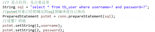 通过PreparedStatement对象来解决。在创建PreparedStatement对象时会先把sql语句预编译进体内。