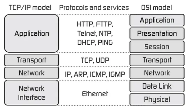 实现网络通信的基础是网络通信协议,这些协议通常是由互联网工程任务组 (IETF)制定的。所谓“协议”就是通信计算机双方必须共同遵从的一组约定,例如怎样建立连接、怎样互相识别等,网络协议的三要素是:语法、语义和时序。构成我们今天使用的Internet的基础的是TCP/IP协议族,所谓协议族就是一系列的协议及其构成的通信模型,我们通常也把这套东西称为TCP/IP模型。与国际标准化组织发布的OSI/RM这个七层模型不同,TCP/IP是一个四层模型,也就是说,该模型将我们使用的网络从逻辑上分解为四个层次,自底向上依次是:网络接口层、网络层、传输层和应用层,如下图所示。