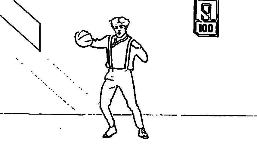 现在蔡老师的衣服都已经变成线条了,基础的描边效果已经达成。但是我们可以看到,图片中比如说地面上,还有一些黑色的我们并不想要的点(我们称这些点为噪点)。以及蔡老师的线条还是有点细,所以我们需要将蔡老师的线条变粗些。