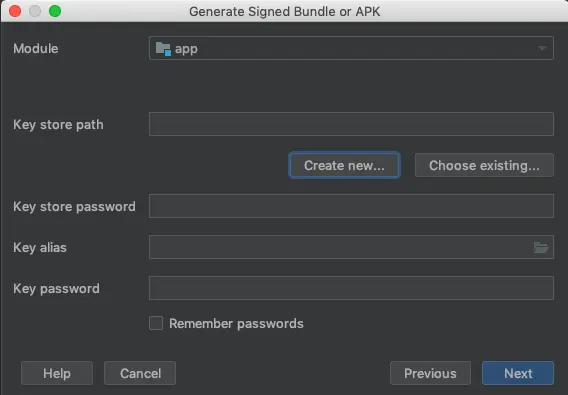 接下来,如果你已经有了密钥库,就使用已有的;如果没有,那就点击 “新建(Create new)…” 创建一个。