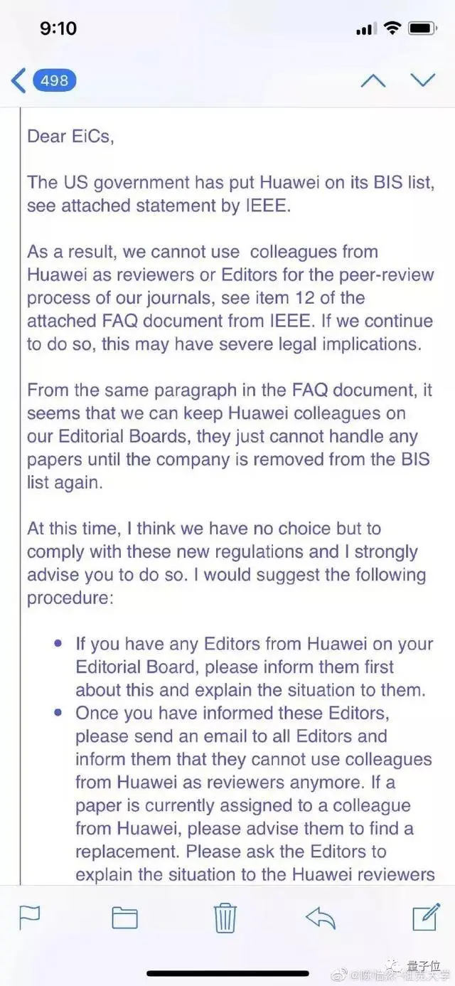 一则IEEE内部邮件曝光,下令清理清理华为审稿人,事件持续发酵。