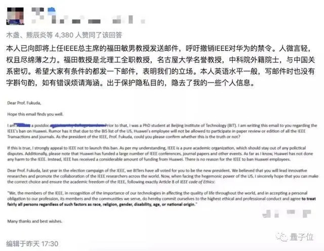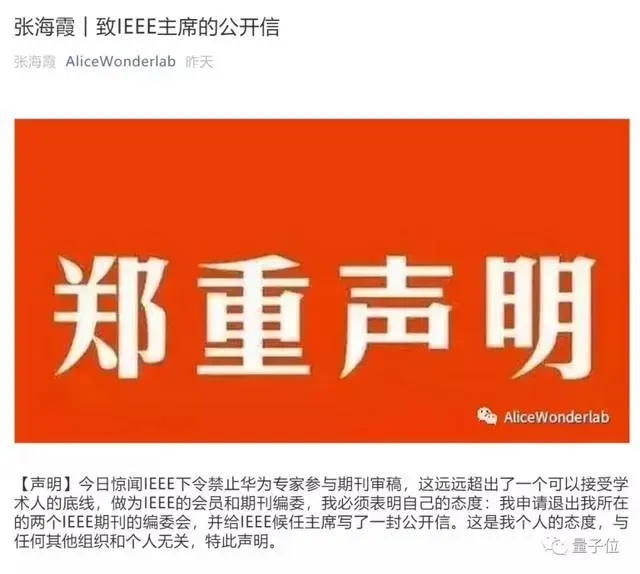 也不乏有担任 IEEE 学术职务的中国学者发表公开信,声明辞去相关职务。