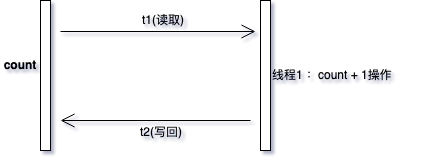 上图中我将线程对count的自增操作画了个简单的流程,一个线程要对count进行自增时要先读取count的值,然后在当前count值的基础上进行count+1操作,最后将count的新值重新写回到count。