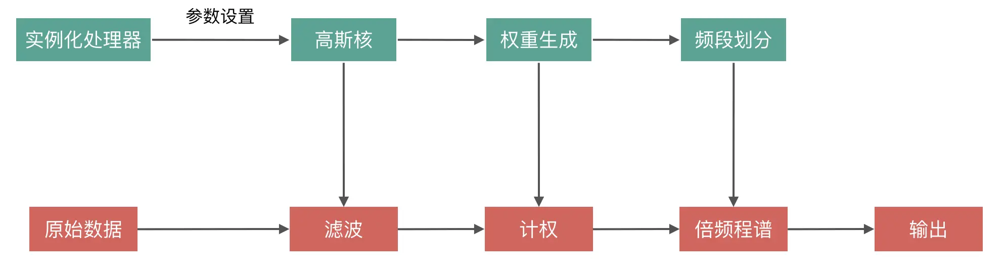 sound-processor 是一个极小(gzip < 3KB)的处理音频信号的库,作为音频可视化的底层部分,使用相对科学的方法处理原始音频信号并输出符合人类主观听觉的信号,内部的处理流程如下: