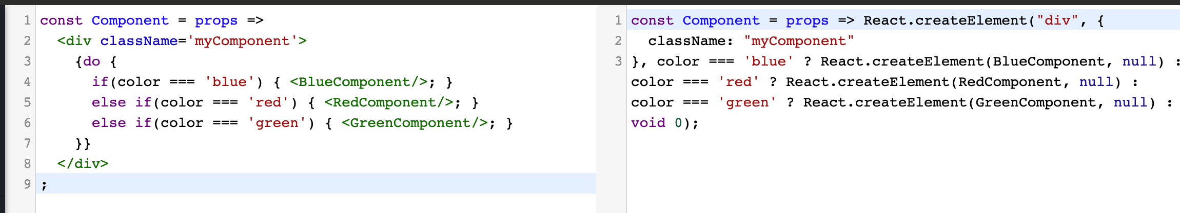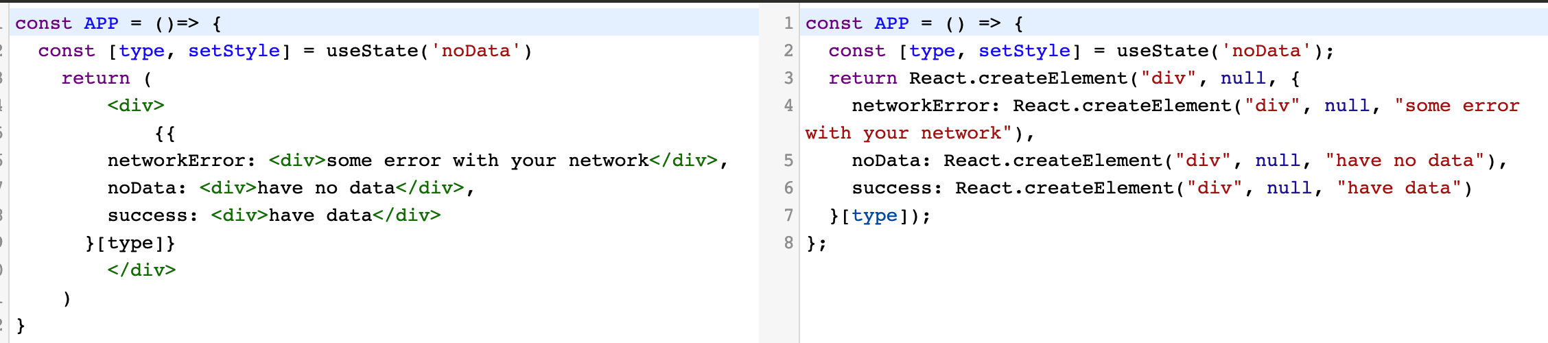其实本质上我们的枚举值会成为函数 React.createElement 的一个参数,那么这个参数就会运行一次拿到表达式的返回值,那么就是等于