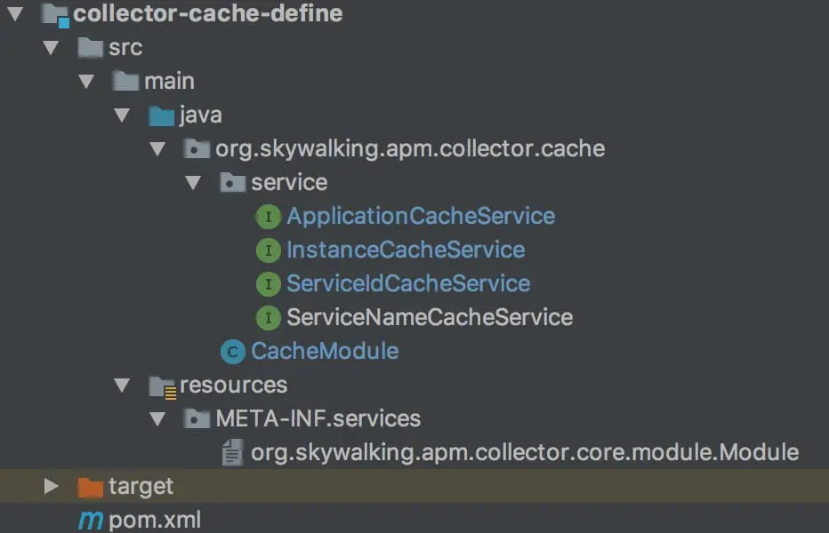 org.skywalking.apm.collector.cache.service.ServiceNameCacheService ,服务名数据缓存服务接口。org.skywalking.apm.collector.cache.service.ServiceIdCacheService ,服务编号数据缓存服务接口。