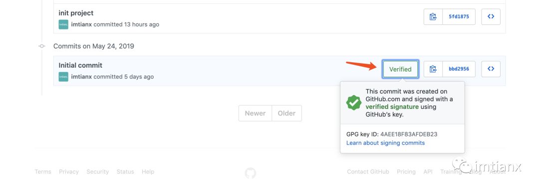 最近使用 GitHub 时无意间看见 commit 历史中有些带有 Verified 的标识,而有些没有,如下图,