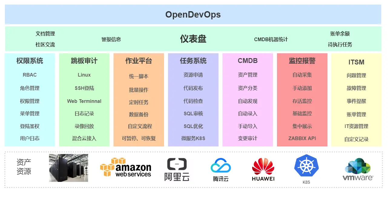 CODO开源多云管理平台将为用户提供多功能:ITSM、基于RBAC权限系统、Web Terminnal登陆日志审计、录像回放、强大的作业调度系统、CMDB、监控报警系统、DNS管理、配置中心等