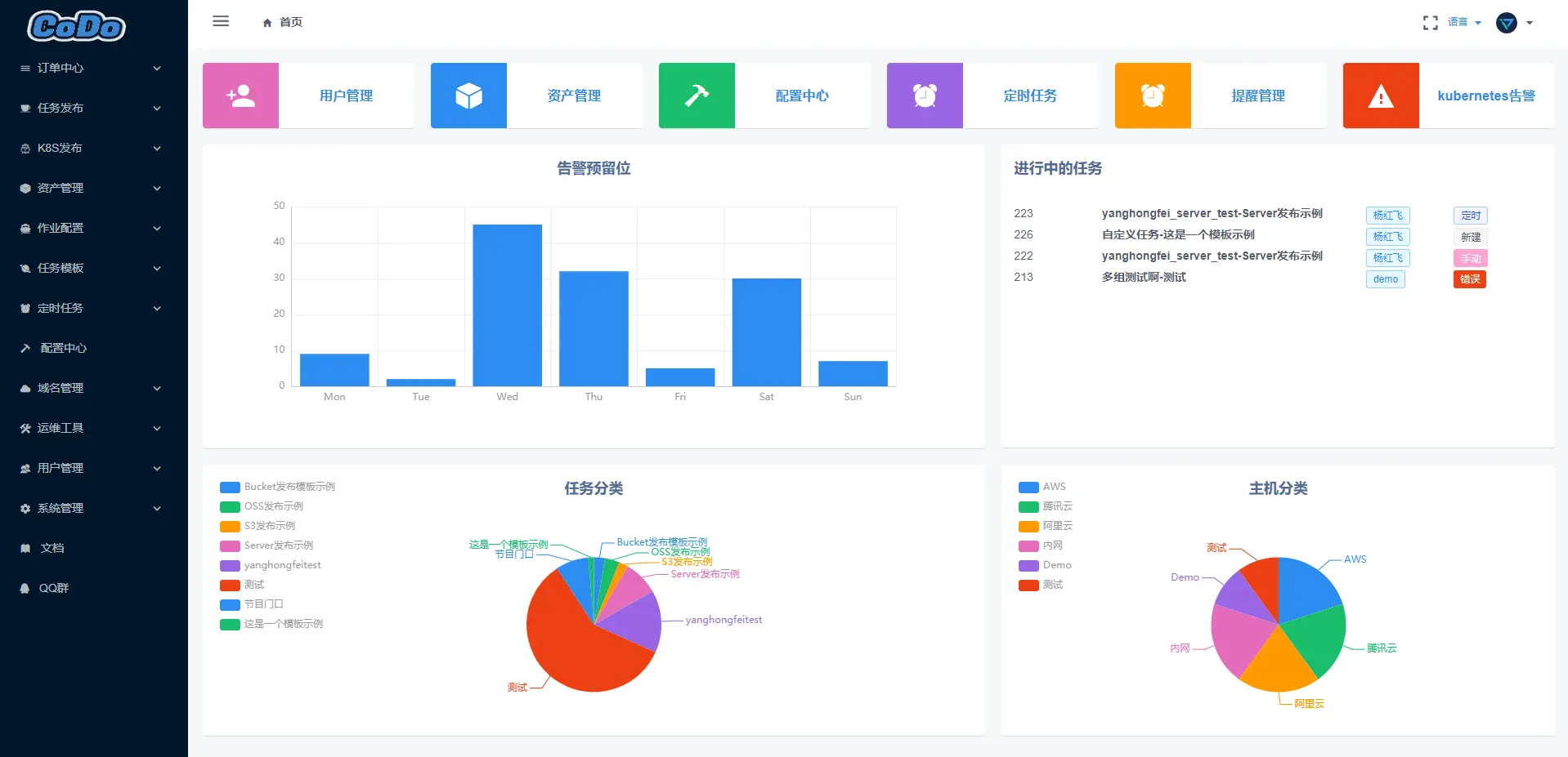 功能齐全: CoDo采用微服务的理念构建,模块化开发,目前已有资产管理、定时任务、任务调度、配置中心、域名管理、运维工具几大模块,支持持续集成、持续部署、代码审查、数据库审核与优化建议等众多功能,覆盖大部分的运维场景,让你不再费心劳神在多个系统间奔波,一个平台全搞定