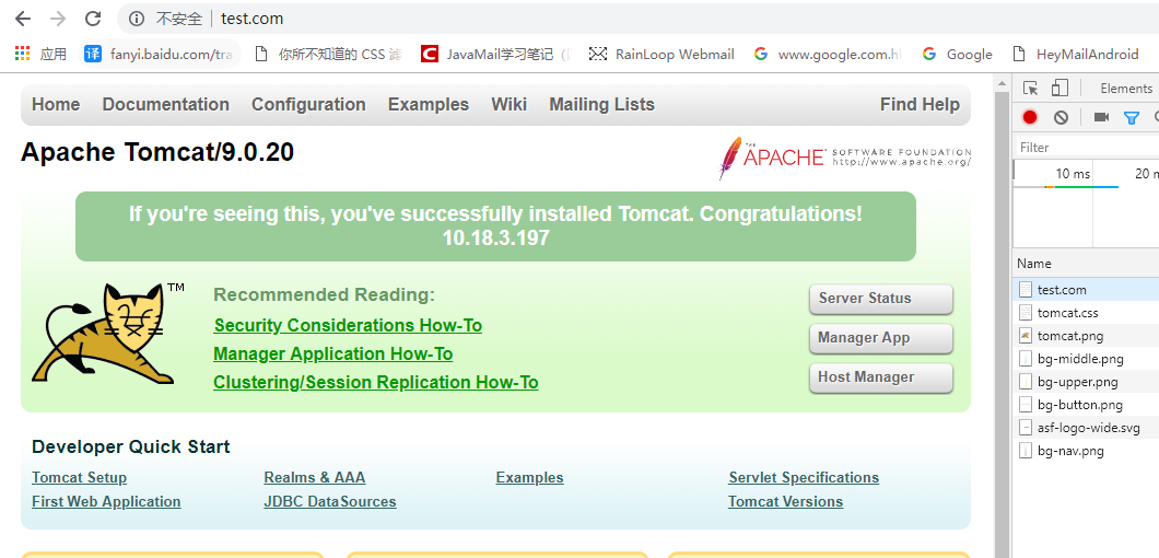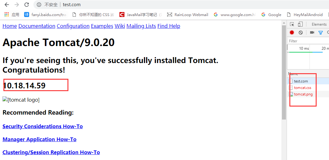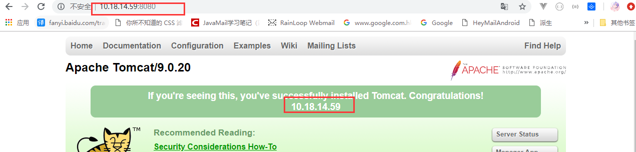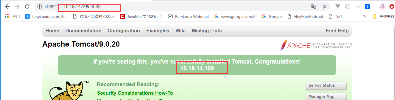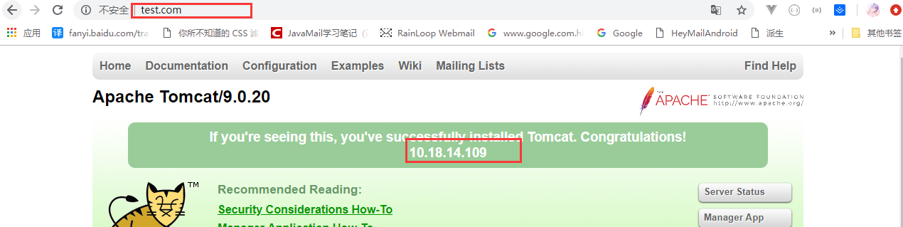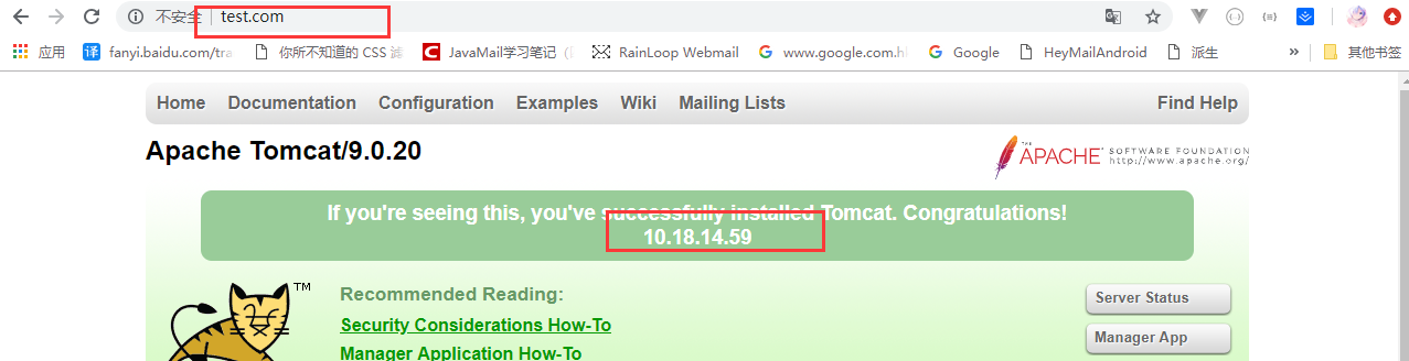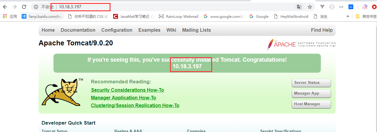 我们要演示Nginx的相关配置需要3台服务器,里面用Tomcat。为了我们区分我们在每个Tomcat里面的index.jsp里面写入的本机的Ip。启动Tomcat,出现如下效果。