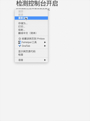 当开启控制台后会显示已开启