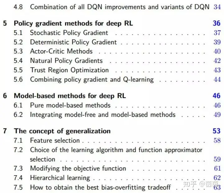 第三章将介绍一般的强化学习框架以及马尔可夫决策过程(MDP)的情况。我们将在这样的背景中介绍可用于训练深度强化学习智能体的不同方法。一方面,学习一个价值函数(第四章)和/或策略的直接表征(第五章)属于所谓的「无模型方法」。另一方面,可以使用学习到的环境模型的规划算法属于所谓的「基于模型的方法」(第六章)。