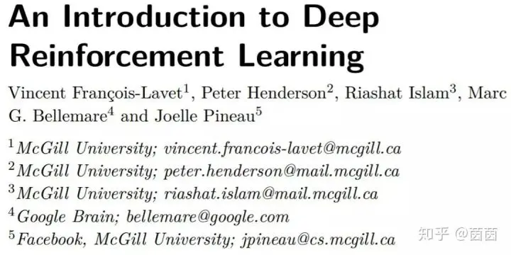 深度强化学习已经为围棋、视频游戏和机器人等领域带来了变革式的发展,成为了人工智能领域的一大主流研究方向。麦吉尔大学、谷歌大脑和 Facebook 的多位研究者在 arXiv 发布了 140 页的《深度强化学习入门》文稿,对深度强化学习的当前发展和未来趋势进行了系统性的总结和介绍。本书是伯克利知名机器学习专家 Michael Jordan 教授主编的「机器学习基础与趋势」系列丛书中最新加入的一本。小编摘取翻译了其中部分内容以呈现本书的结构脉络,更多内容请查阅原文。