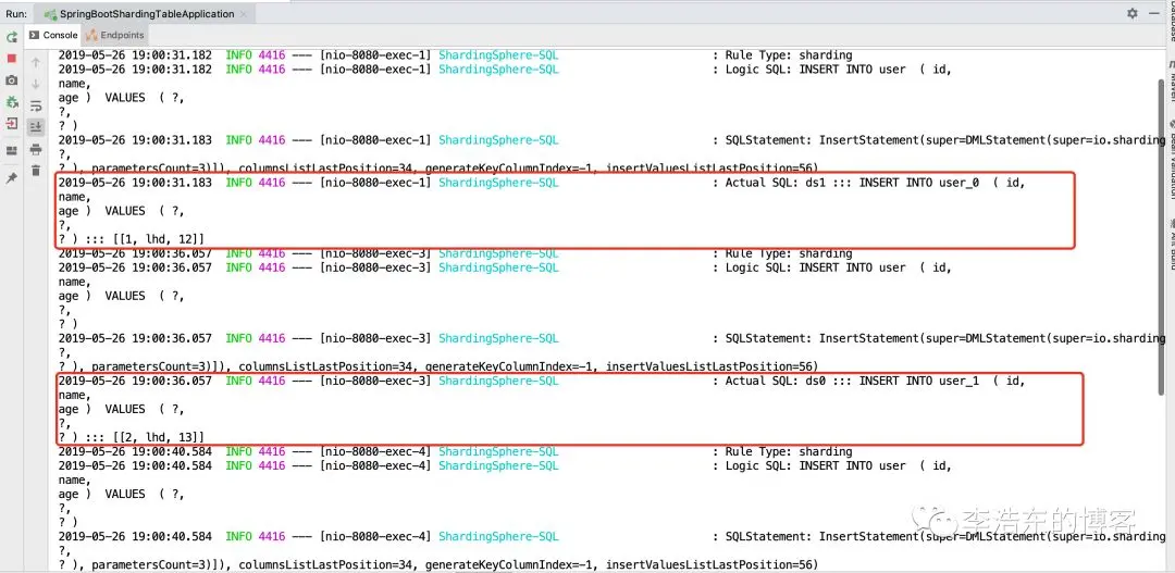 通过代码大家也可以看到,我的业务层代码和平时单表操作是一样的,只需要引入sh配置和逻辑表保持现有的不便即可,使用无侵入我们的代码 可以在原有的基础上改动即可 可以说是非常方便