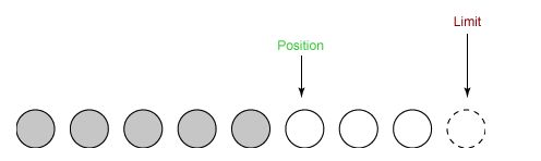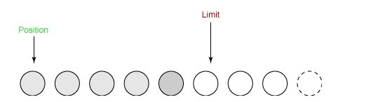 ③ 在将缓冲区的数据写到输出通道之前,需要先调用 flip() 方法,这个方法将 limit 设置为当前 position,并将 position 设置为 0。