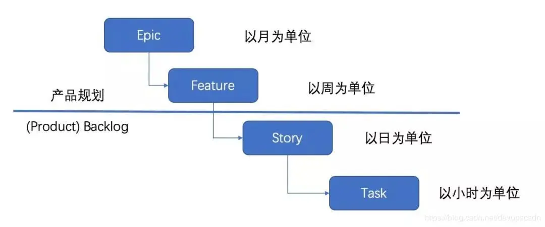 战略、功能、需求、任务等的在具体项目中很难进行归类,也可以简单的按月、周、日、小时为单位进行判断,通常一个Epic可能会跨多个Release交付,Feature跨多个Sprint,Story需要在一个Sprint中完成,而Task通常是更短小以小时至多以天计。