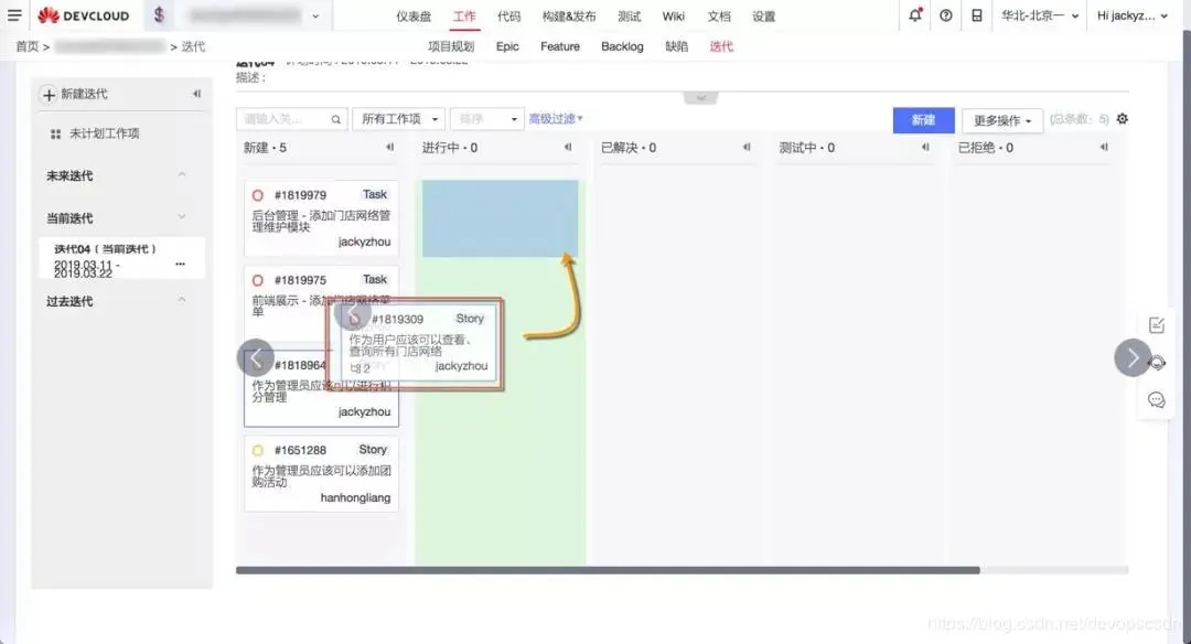 卡片是用户故事的展现形式,我们会切换到迭代视图的卡片模式,通过拖动卡片完成状态更新。