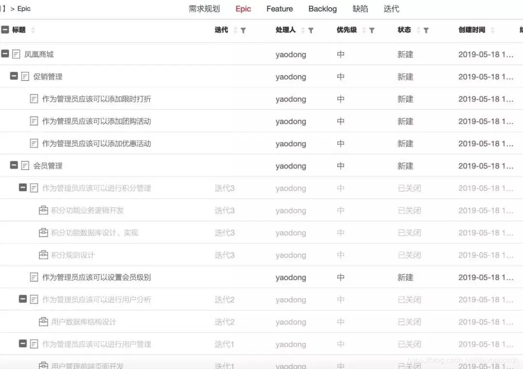 • Epic通常是公司重要战略举措或者巨大的需求,例如做一个电商网站就是一个Epic。