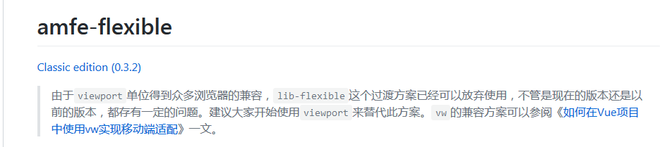 这里有一点比较模糊的,就是关于amfe-flexible的版本问题,有些地方叫lib-flexible,其实都是一个东西,之前一直傻傻分不清楚。这个js其实做的工作只有一个就是通过js动态修改meta,给html设置相应的font-size等,当然如果不用它的话我们也可以根据需要手动修改。