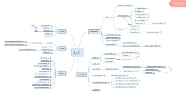 多线程和并发包,重要性就不赘述了,直接说一下学习方法。你首先要理解多线程不仅仅是 Thread 和 Runnable 那么简单,整个并发包下面的工具都是在为多线程服务。对于多线程的学习切不可看几篇面试文章,或者几个关键字 CountDownLatch,Lock 巴拉巴拉就以为理解了多线程的精髓,笔者这里整理了一个大图: