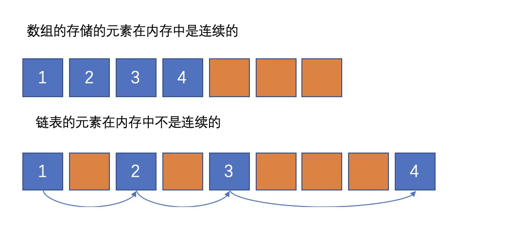 首先看一下数组和链表在内存中的不同
