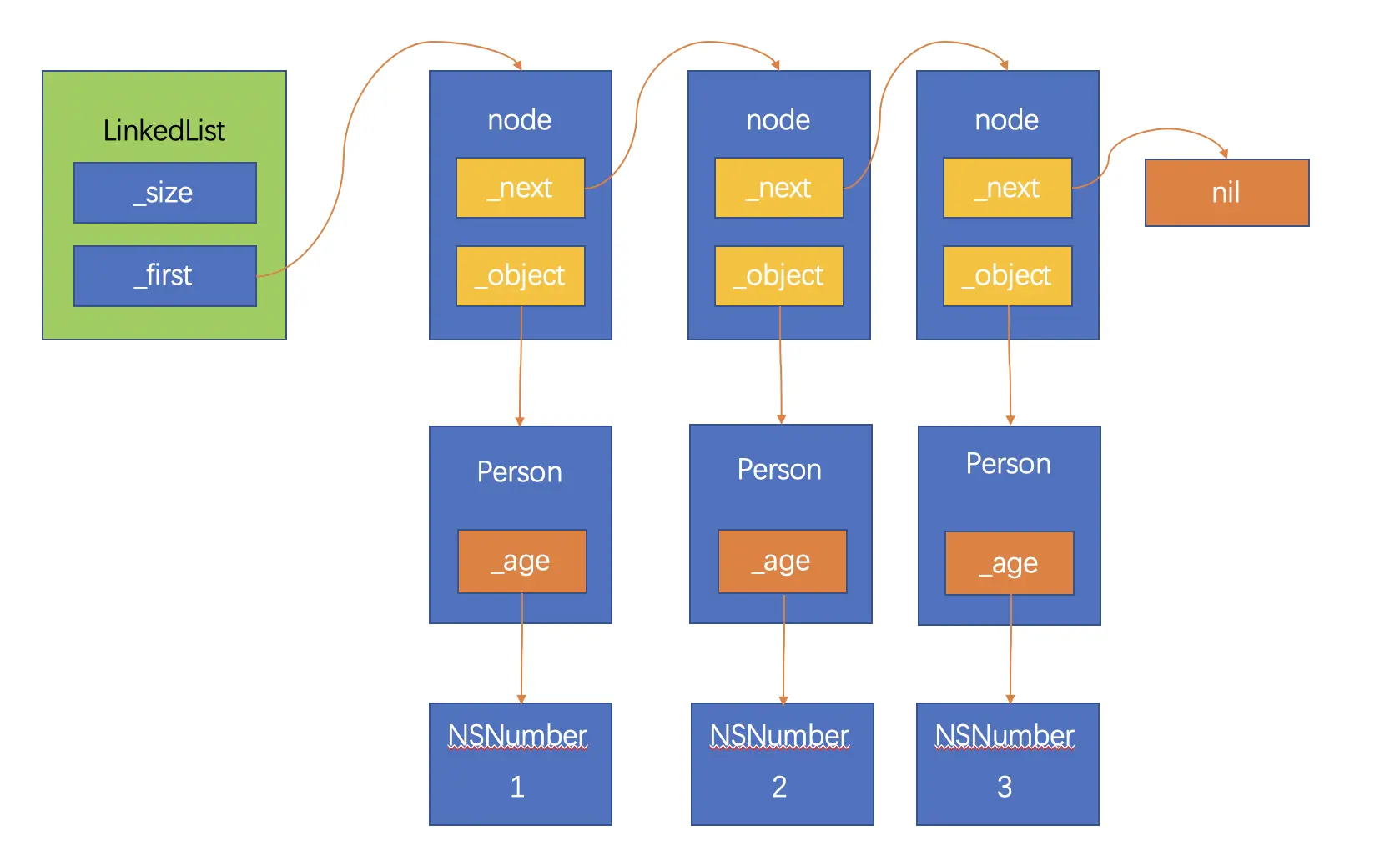 JKRSingleLinkedListNode *node = [[JKRSingleLinkedListNode alloc] initWithObject:anObject next:_first];