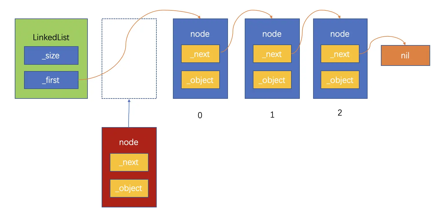 这时需要将新节点的next指向原来链表的_first,并将链表的_first指向新节点: