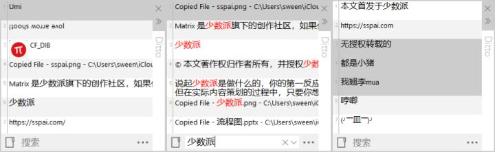 Ditto 最基本的功能,当然就是剪贴板历史记录管理了,你不仅可以储存数百条剪贴历史,还可以通过搜索功能轻松找到想要粘贴的内容。
