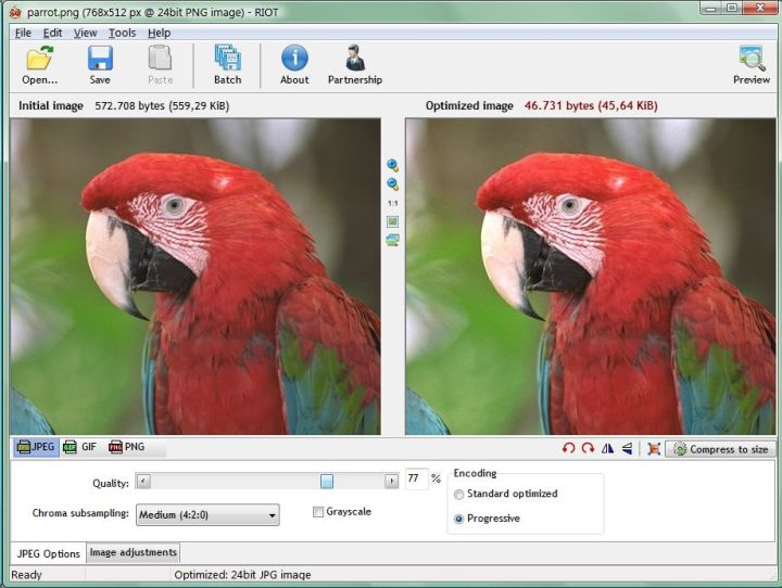 如果你需要图片优化工具, RIOT 则是一个不错的选择。 RIOT 界面简洁干净,以供你实时比较「原图」和「优化后的图」,同时也可以实时看到优化后的图片体积。Riot 使用起来非常轻量、快速以及简单,然而对于深度用户而言,又不失强大。
