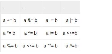 Python中的增强赋值是从C语言中借鉴出来的,所以这些格式的用法大多和C一致,本身就是对表达式的简写,即二元表达式和赋值语句的结合,比如a += b 和a = a + b 就是一致的,比如还有以下的增强赋值语句。
