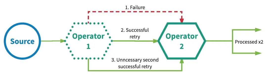 下图的例子描述了这种情况:第一个算子最初未能成功处理事件,然后在重试时成功,接着在第二次重试时也成功了,其实是没有必要的。