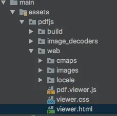 将前面构建好的 pdf.js 相关文件拷贝到应用程序里,例如 Android 则拷贝到 assets 目录中,如下图所示:
