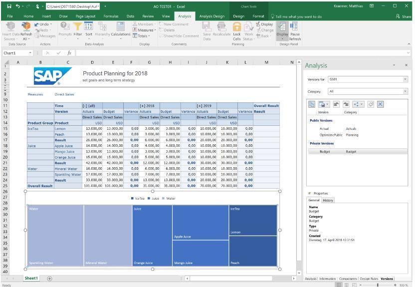 新版本的SAP Analysis for Microsoft Office可以直接消费SAC Planning模型, 计划用户可以通过其熟悉的Microsoft Excel环境连接到SAC进行工作。简化的Excel样式允许用户通过强大的排序/过滤功能轻松访问各种维度。图形化的拖拽结构管理,创建报表公式以聚合值或在摘要表中执行简单分析,报表公式可用于汇总来自多个来源的信息。