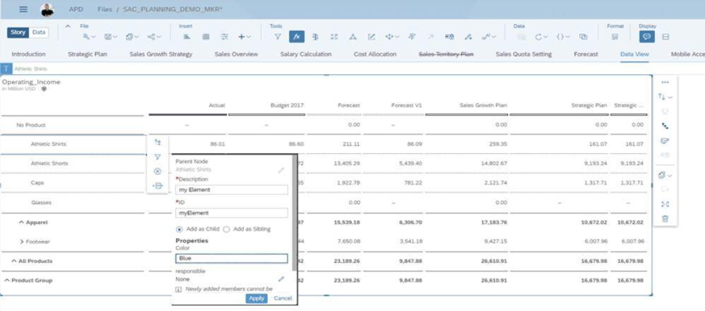 通过动态维度,计划用户可以动态地将新成员添加到维度,而无需离开其所在的计划流程或SAC 报表。此功能相当强大,在项目计划或人员计划中经常使用。添加新维度成员是立即可见的,可用于数据输入。