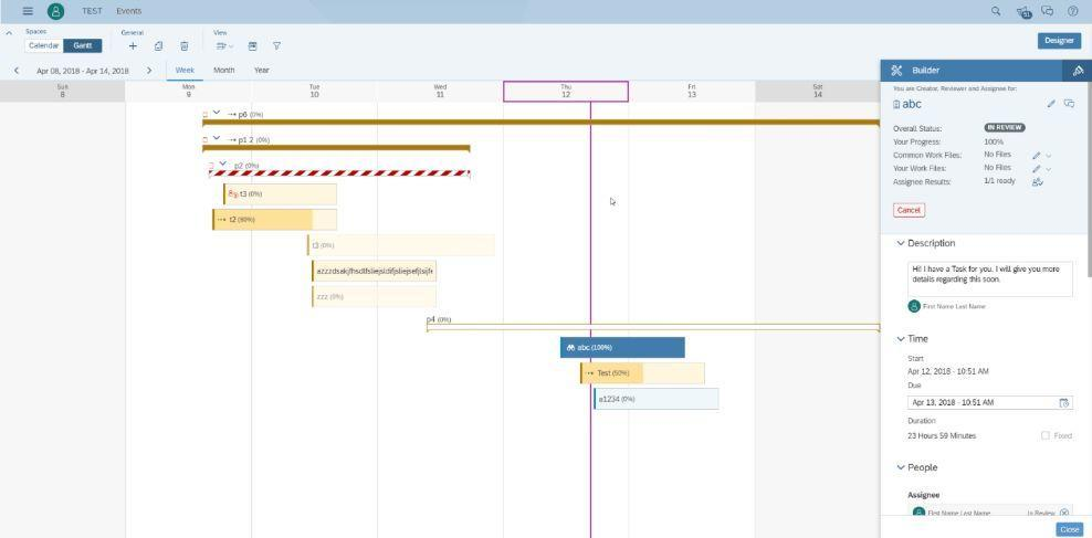 SAP通过添加任务并分配所有权和审批责任,为流程和责任所有者提供在日历视图或甘特图(条状视图)中可视化跟踪关键里程碑和任务进度的能力,允许管理员通过拖放操作就能轻松更改任务的范围和日期。