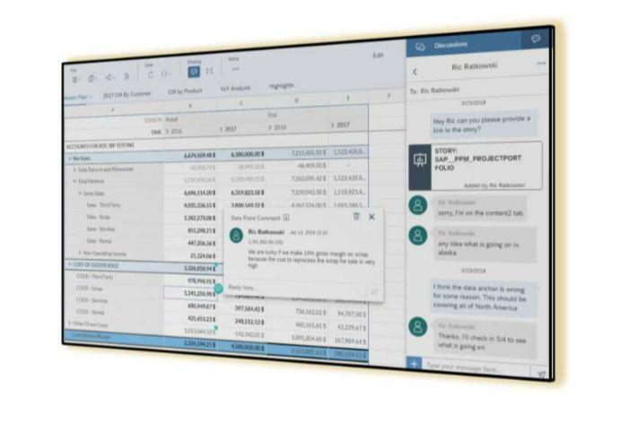 协同工作是SAC的关键支柱,特别是计划方案。通过评估和评论跟踪,您可以在上下文中讨论计划以增强问责制。创建讨论并邀请同事,给他人分享报表、模型及私有版本。在表格中输入和跟踪特定数据点进行注释。在上下文中协同工作,通过集成的消息传递来分享故事,通过共享的交互式仪表盘跟踪重要的KPI。