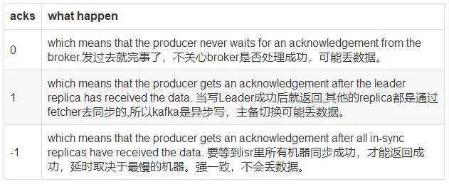 服务端这边的处理是Follower从Leader批量拉取数据来同步。但是具体的可靠性,是由生产者来决定的。
