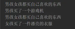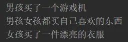 System.out.println("男孩女孩都买自己喜欢的东西");