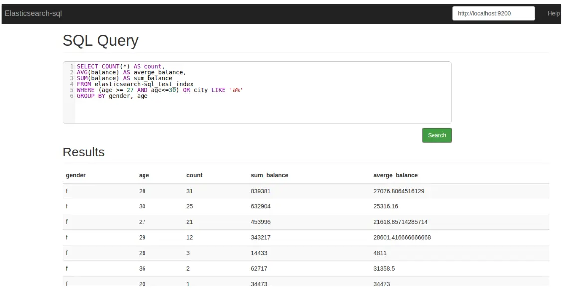 Elasticsearch-SQL 插件提供了可视化的界面,方便你执行SQL查询,界面如下: