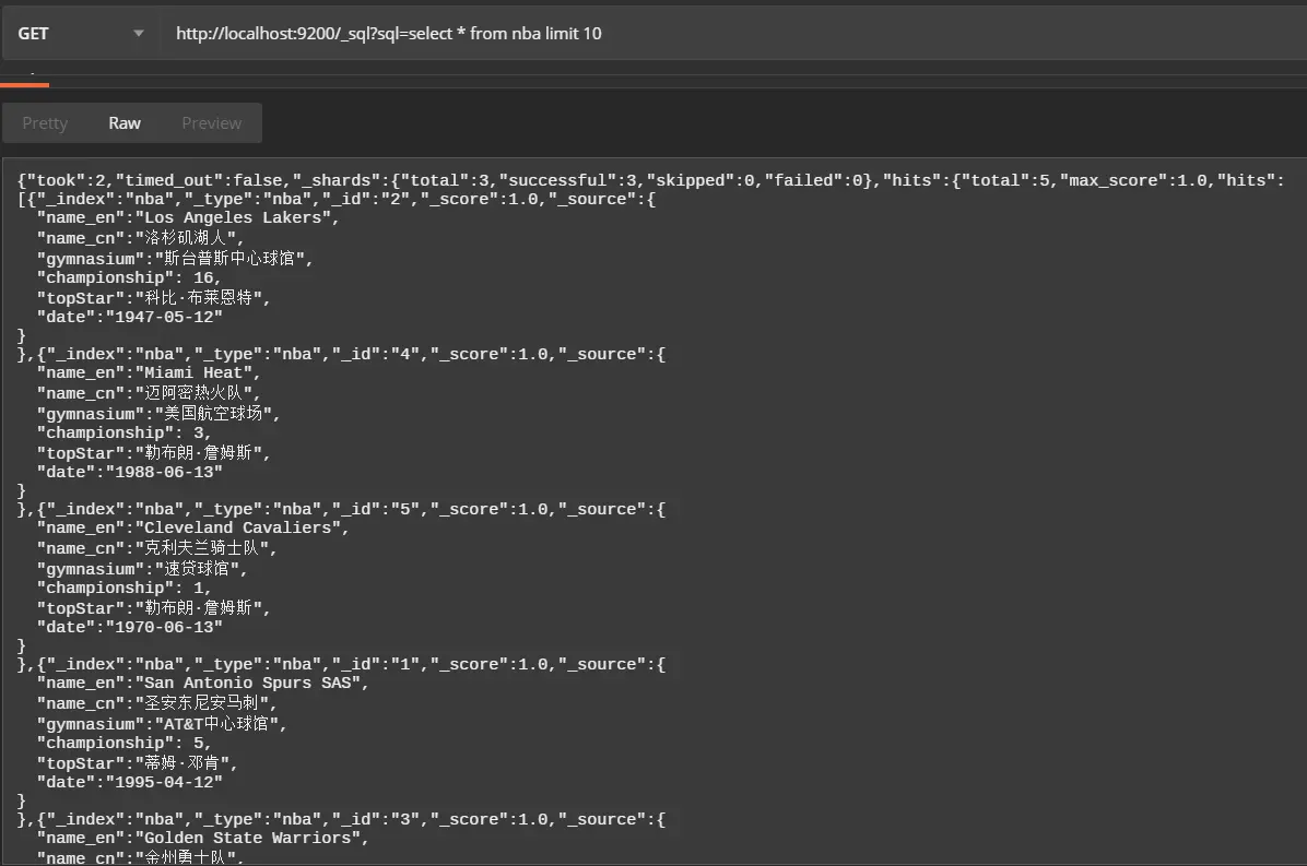 http://localhost:9200/_sql?sql=select * from nba limit 10