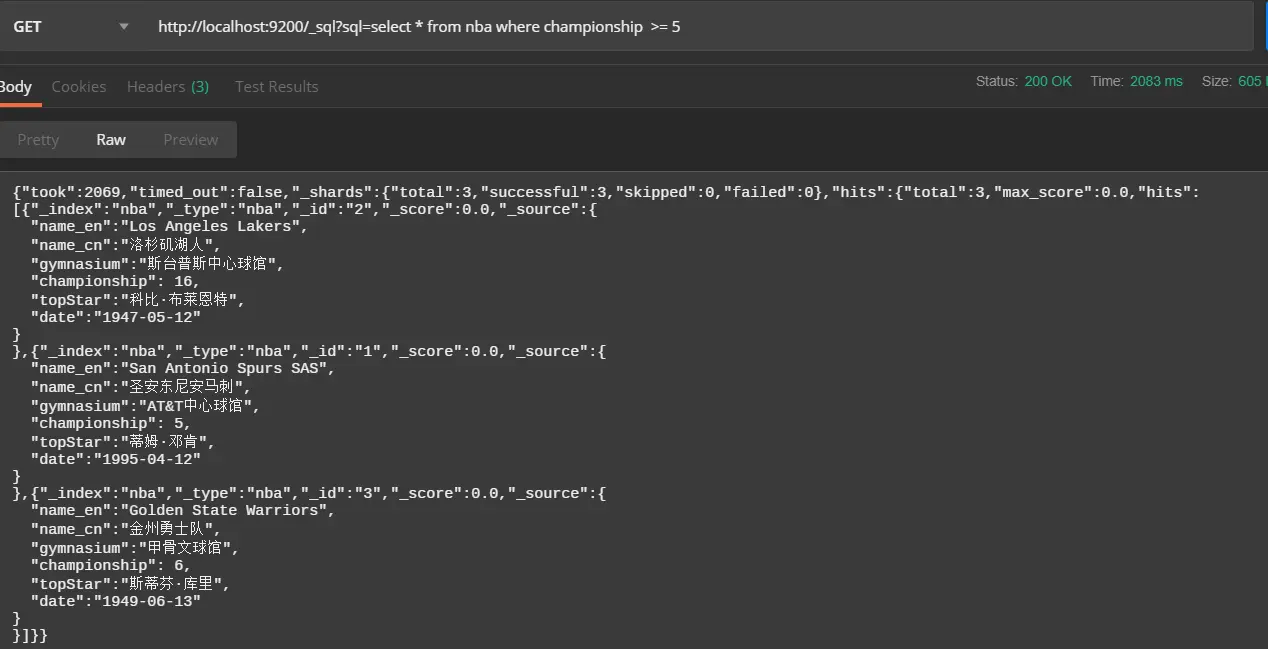 http://localhost:9200/_sql?sql=select * from nba where championship >= 5
