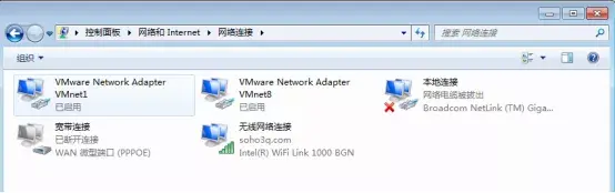 2. 打开宿主主机的网络与共享中心,禁用掉虚拟机网卡