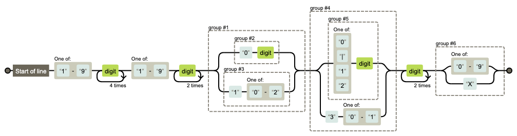 var idcard = /^[1-9]\d{5}[1-9]\d{3}((0\d)|(1[0-2]))(([0|1|2]\d)|3[0-1])\d{3}([0-9]|X)/
