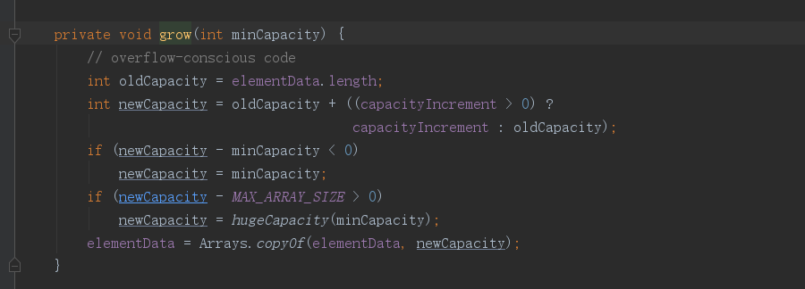 这就是Vector扩容的核心代码,看到与ArrayList的大同小异,不过这里确实多了一个这个东西,