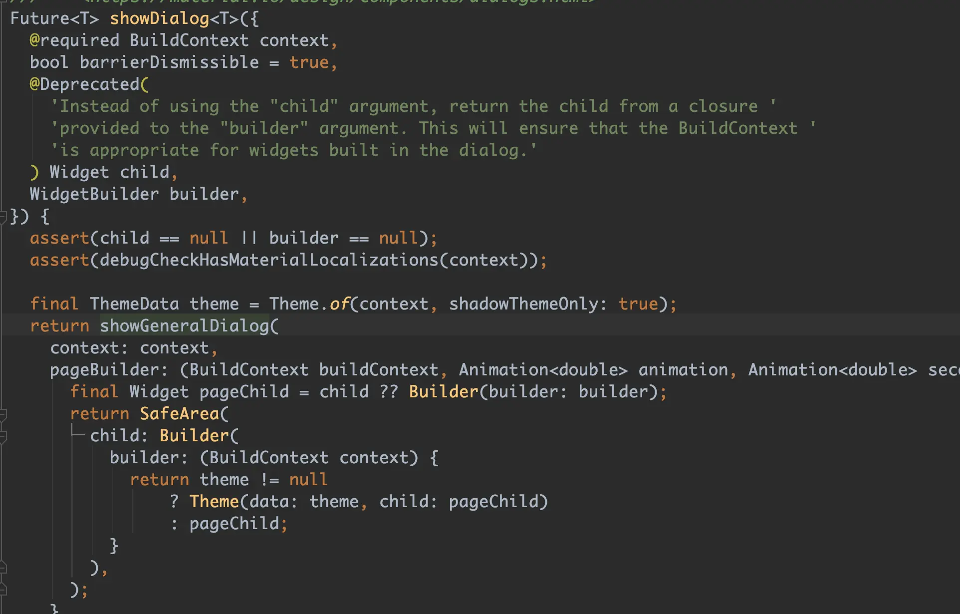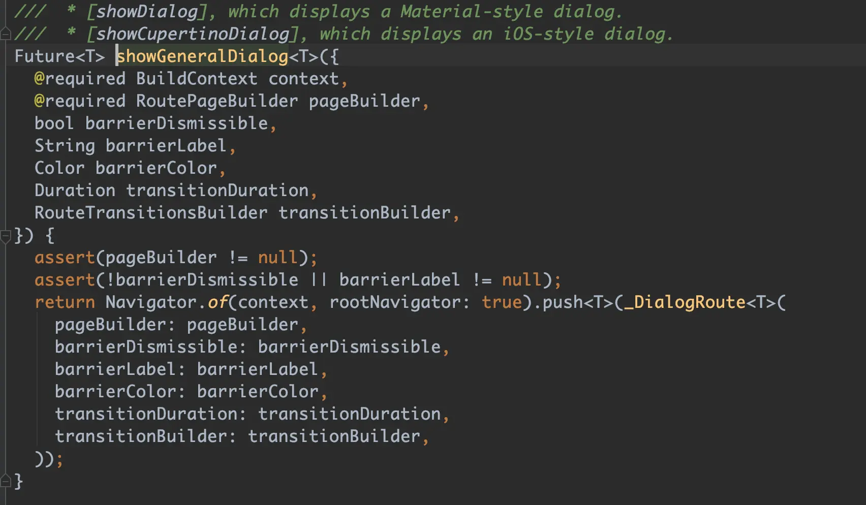 今天分享的是一个常用功能——弹出Dialog,对于Flutter,万物皆Widget,所以弹出一个Dialog也是加上一个Widget,具体的api就是showDialog。不过不同于原生,Flutter的showDialog本质上是push一个新的路由。具体可以看showDialog的源码: