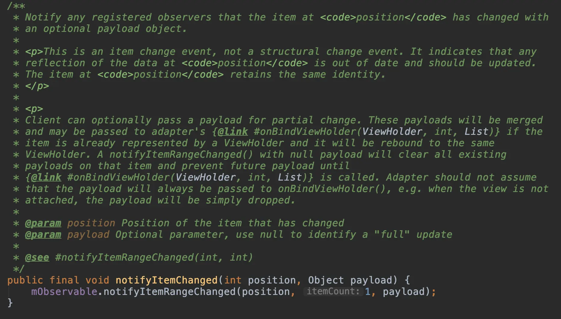 说说RecyclerView中带有payload参数的那个方法吧。方法如下: