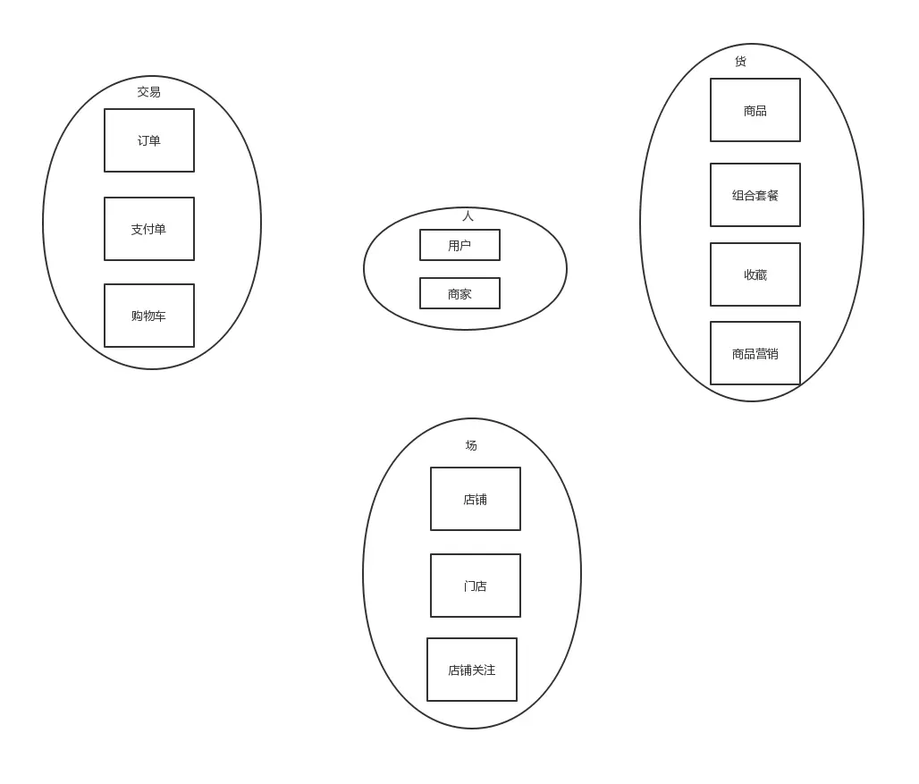 分为人、货、场、交易几个上下文。然后不断的孵化,哪一部分是你业务的核心域,然后不断的服务拆分,比如你也是一家做垂直电商的公司,这些基本的东西肯定不应该是你的核心域,只能是支撑域,要不然你的业务肯定发展不起来。